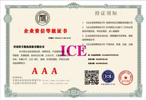 2024年5月,我公司經(jīng)過權威評審機構認證,榮獲了信用等級3A級企業(yè)資信等級證書。3A資信等級是評級公司根據(jù)企業(yè)的經(jīng)營情況,包括企業(yè)盈利能力、管理能力、發(fā)展前景等方面進行綜合評估,給出的最高信用評價,這充分證明了本公司的誠信度和資質(zhì)實力。